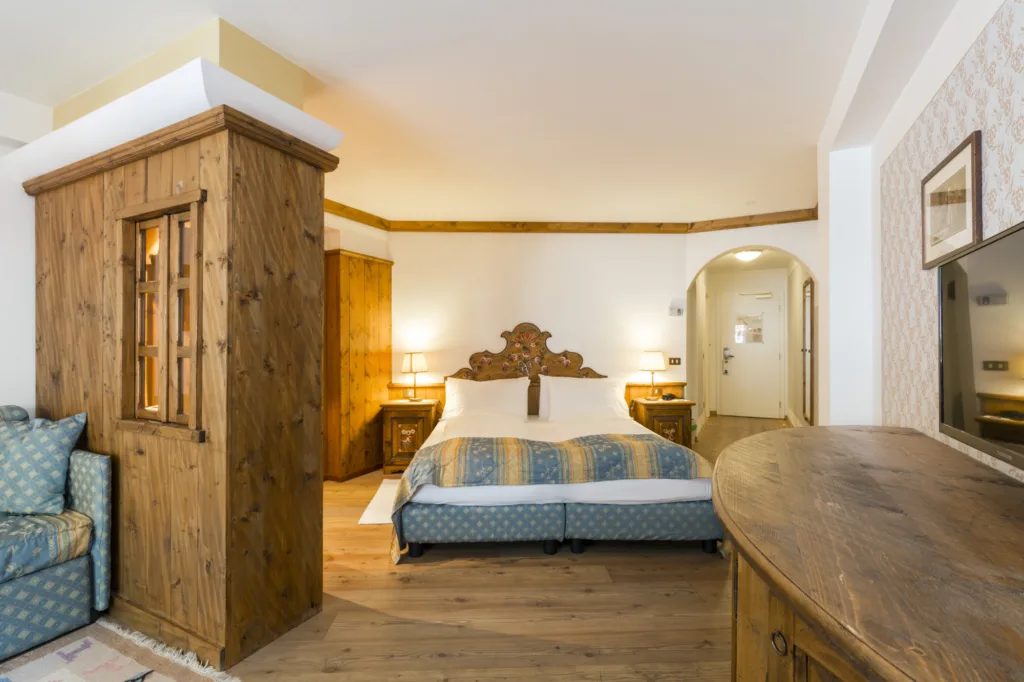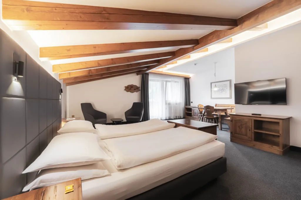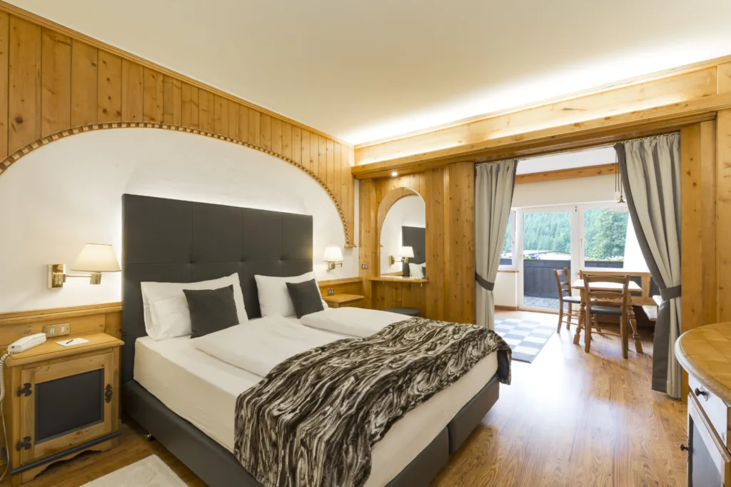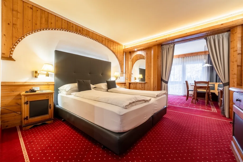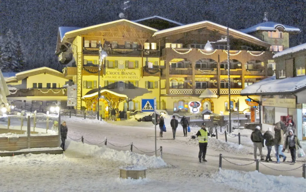 An excellent hotel in the centre of Canazei. This family run hotel has several categories of rooms, with ensuite bathroom, satellite SKY TV, hairdryer, safe, WiFi, non smoking rooms. The has a lounge bar with open fireplace, wine bar, wellness centre and new swimming pool. Breakfast included