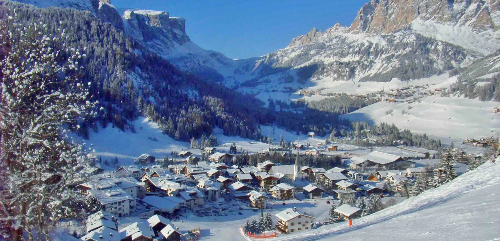 It is set on the Sellaronda circuit on a high plateau that has sun-filled perfectly groomed slopes for all abilities.